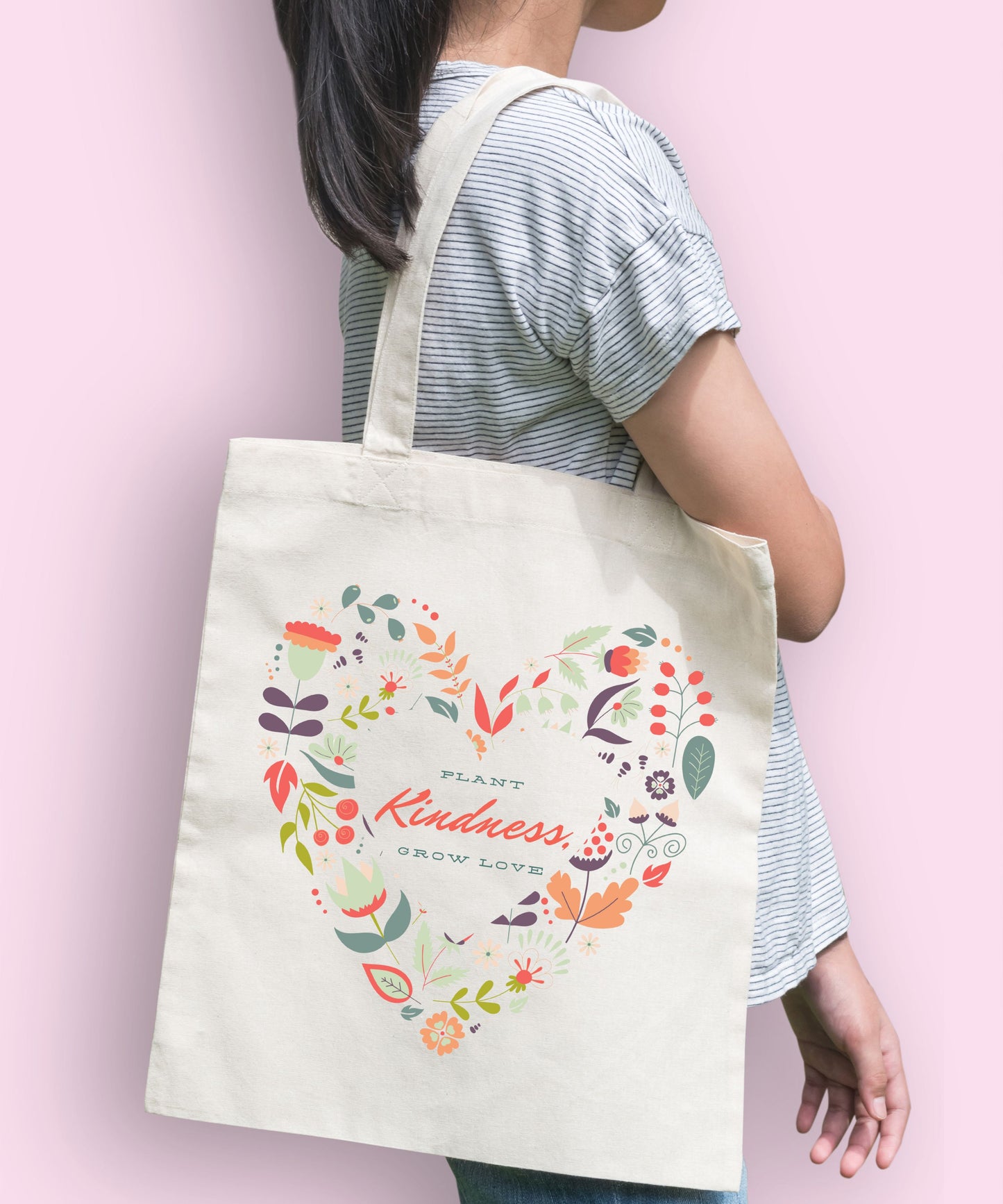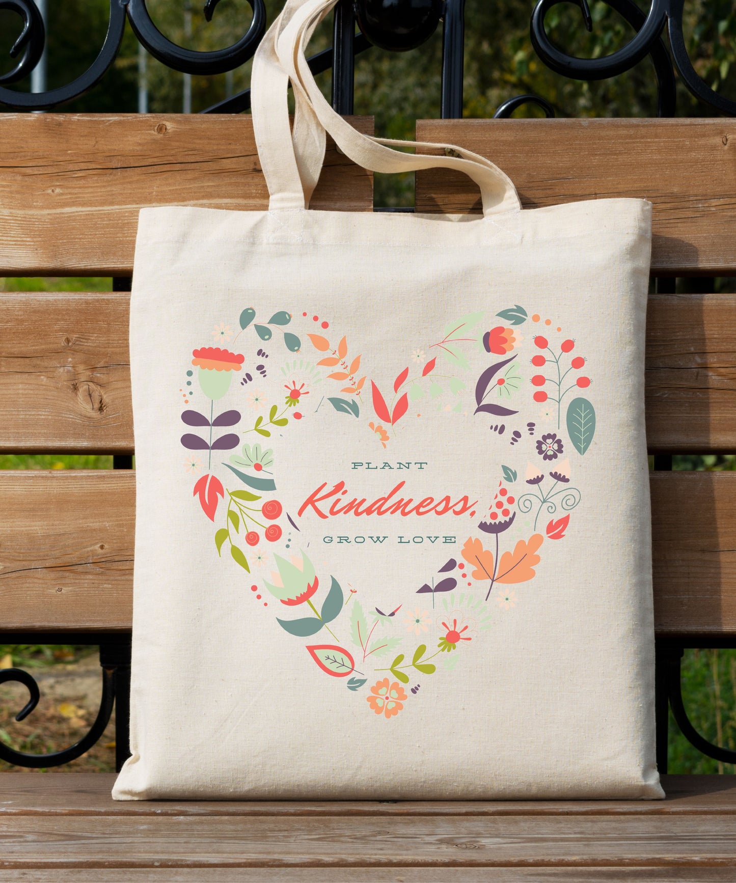 Plant Kindness Grow Love Cotton Canvas Tote Bag