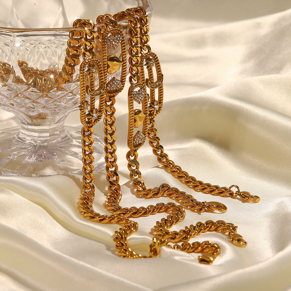 Elevate your style with our Sparkle & Shine Link Bracelets. These eye-catching bracelets feature a bold, geometric design accented with sparkling CZ stones. Choose from two styles: Heart Motifs or Celestial Motifs.